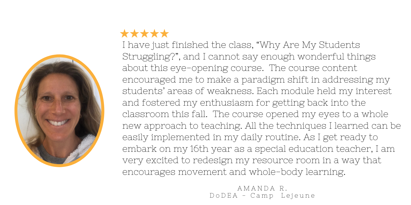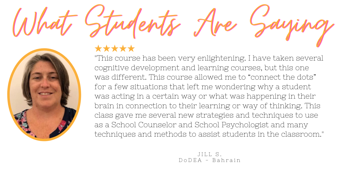 This course gives teachers insight regarding brain development, how children learn, and what is at the root of their struggles in the classroom, then be able to adapt the environment in order to adequately meet the individual learner's needs.